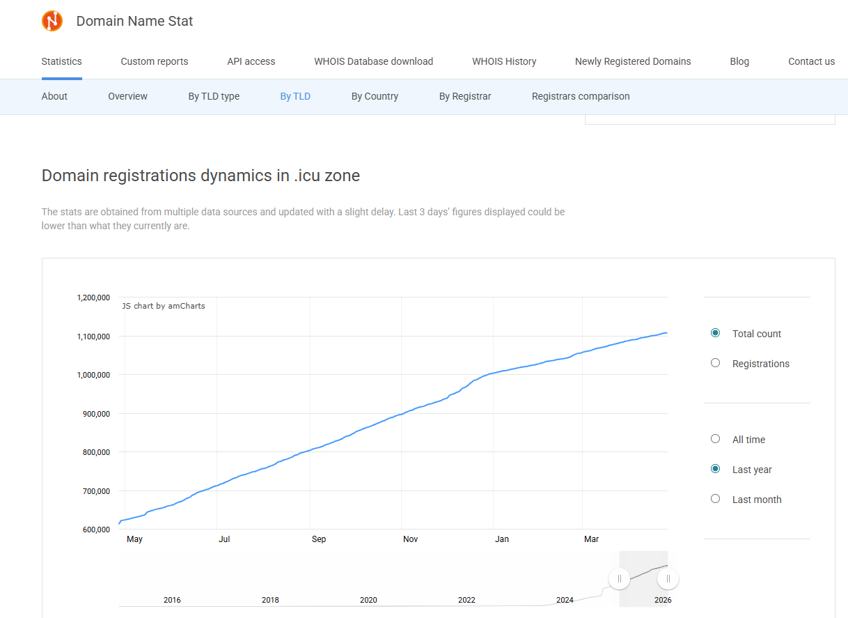 The .icu extension is also deeply embedded in the Chinese internet commercially. According to domainnamestat.com, the .icu zone has 1,107,698 registered domains to date.