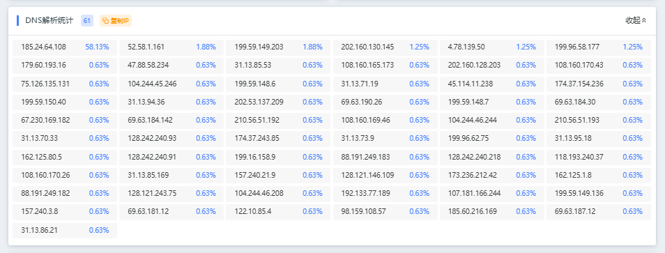 At 6:22 a.m. UTC on Tuesday, April 28, 2026, when this publication was written, testing using itdog.cn against one of the authoritative servers, b.nic.icu, by resolving the A record through local ISP DNS servers produced the following result: only 58.13% of attempts resolved to the designated IP address, 185.24.64.108, while the others were polluted.